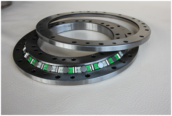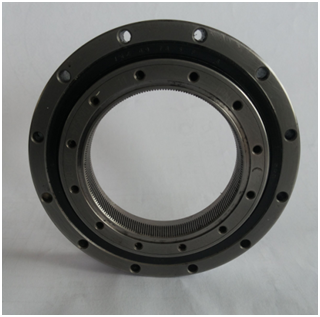 CSF/CSG系列諧波減速器用交叉滾子軸承(見圖4)與普通的交叉滾子軸承結(jié)構(gòu)上稍有不同,基本結(jié)構(gòu)形式類似,采用外圈分割型,內(nèi)圈整體結(jié)構(gòu),與標(biāo)準(zhǔn)交叉滾子軸承相比,內(nèi)外套圈上加工有很多安裝孔,尤其是內(nèi)圈,從外到內(nèi)般有三層不通尺寸和數(shù)量的安裝螺紋孔,這是外觀上與基本型交叉滾子軸承的卻別。材質(zhì)都采用GCr15軸承鋼,外圈熱處理采用整體淬火工藝,而內(nèi)圈采用滾道表面高頻淬火工藝,這是與普通交叉滾子軸承工藝相比的區(qū)別之處;該諧波減速器用交叉滾子軸承運轉(zhuǎn)摩擦力矩的平穩(wěn)性和精度對諧波減速器齒嚙合力及運轉(zhuǎn)的穩(wěn)定性具有直接的影響,更直接影響了諧波減速器的使用壽命,因此,諧波減速器用十字交叉滾子軸承的質(zhì)量好壞直接決定了諧波減速器的使用果和壽命。